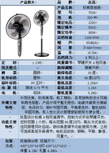志高家用机械遥控定时静音落地扇